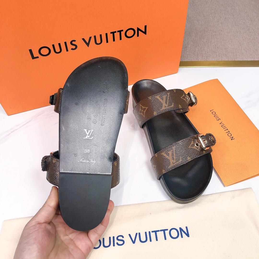 Louis Vuitton LV Bom Dia Flap Mule Leather Slide Sandals
